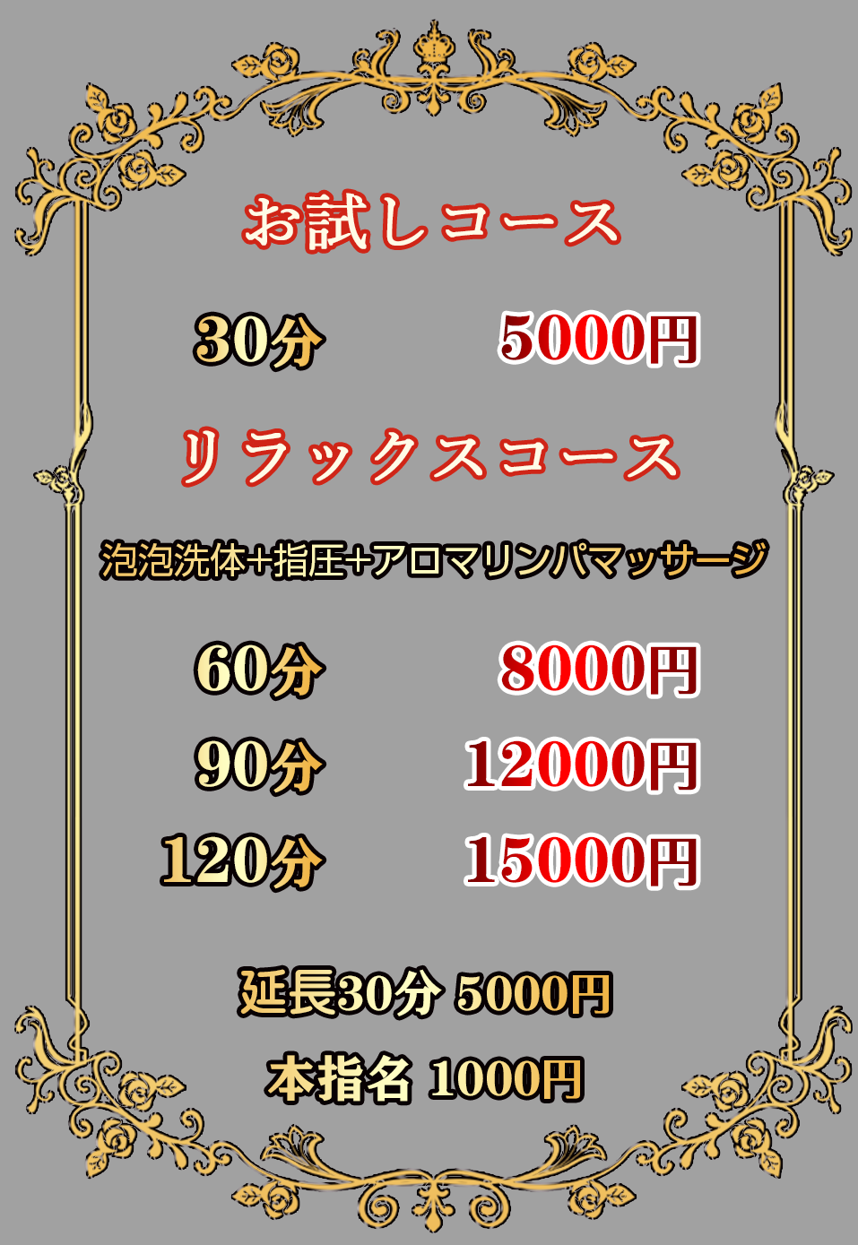 メニュー♡料金